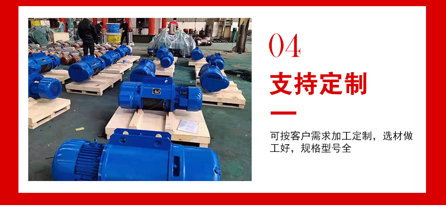 產(chǎn)品介紹:電動(dòng)葫蘆是吊運(yùn)貨物、搬運(yùn)物料的常見設(shè)備。可懸掛在工字鋼等軌道上單獨(dú)使用,也可作為起重機(jī)的重要組成部分一起使用。 電動(dòng)葫蘆具有質(zhì)量輕、體積小、結(jié)構(gòu)緊湊、運(yùn)行平穩(wěn)、操作...