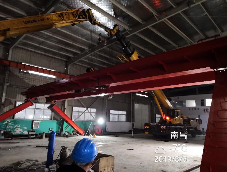 橋架在高架軌道上運行的一種橋架型起重機,又稱天車。橋式起重機的橋架沿鋪設在兩側高架上的軌道縱向運行,起重小車沿鋪設在橋架上的軌道橫向運行,構成一矩形的工作范圍,就可以充分利用橋架下面的空間吊運物料,不受地面設備的阻礙。這種起重機廣泛用在室內外倉庫、廠房、碼頭和露天貯料場等處。