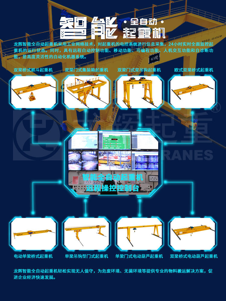 產品介紹:智能全自動起重機 是應用在生產車間的一種智能化,無人操作,自動運行的起重機設備。它具有高精度、精準識別、多車協同、智能調度等特點,開啟了信息化、智能化、高效化無人系...