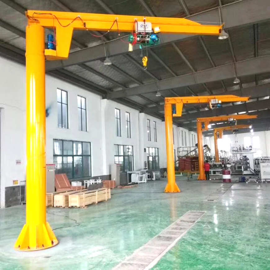 懸臂吊是一種適合工作強度較小的輕型起重機,它由立柱、回旋臂及驅動裝置、電動葫蘆三部分組成,立柱的下方通過地腳螺栓固定在混凝土或者可移動的底盤上。懸臂為空心的鋼結構,具有自重輕,跨度大,吊載狀態下運行速度快的特點。