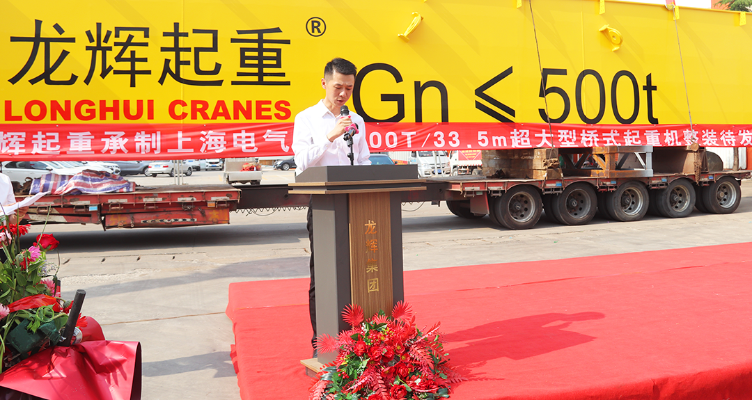 鼓樂齊鳴 歡聲雷動。儀式現(xiàn)場每一位在場嘉賓強(qiáng)烈地感受到龍輝起重上下一心、積極進(jìn)取、開拓創(chuàng)新的精神面貌。參加儀式的主要領(lǐng)導(dǎo)有:新泰市人大常委會副主任、黨組副書記亓桂鋒,羊流鎮(zhèn)黨委書記范育民,羊流鎮(zhèn)黨委副書記、鎮(zhèn)長林曦,羊流鎮(zhèn)武裝部長李宗武以及龍輝起重各級領(lǐng)導(dǎo)、各地合作商及銷售經(jīng)理等,現(xiàn)場200余人共同見證了此次出廠儀式。