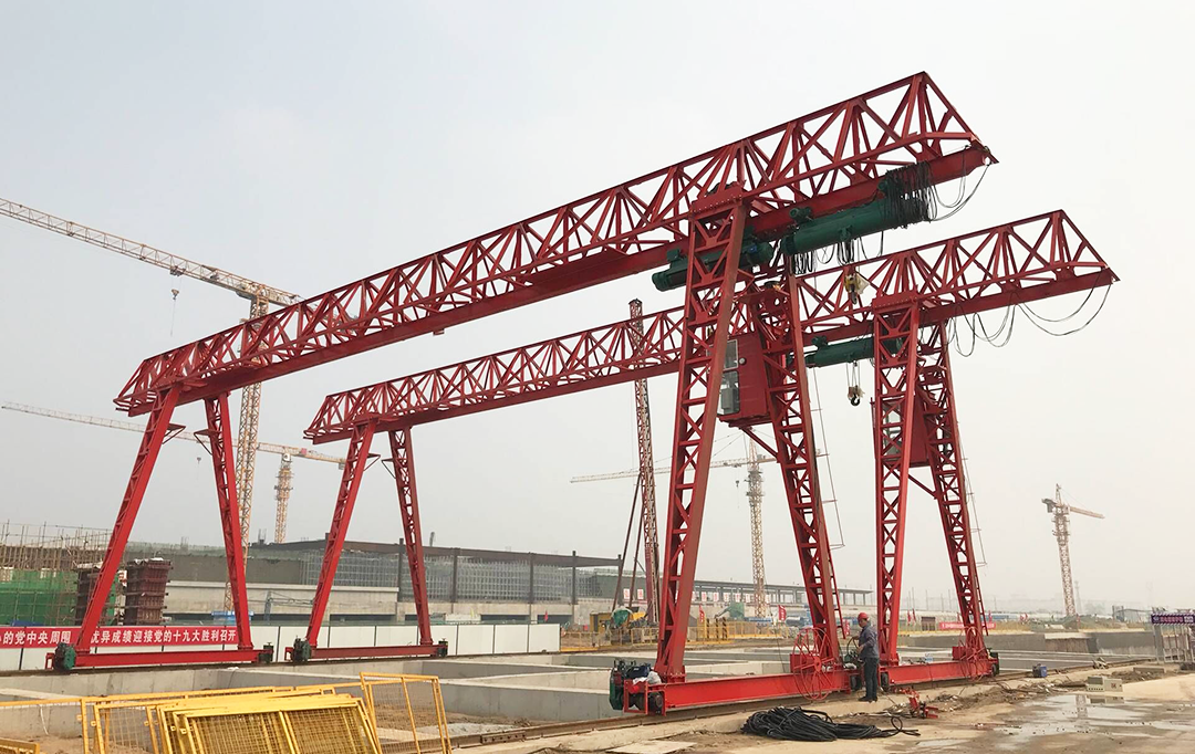 龍門吊有用途非常的廣泛主要被用于工廠、建筑工地、鐵路貨場等等一些地方,所額定起重量一般在3.2一320t工作時,當跨度低于30m時候,金屬結構則是采用雙剛性支撐;而當跨度超過30m時候,則需要顧慮到溫度對鋼結構變形所造成的影響。