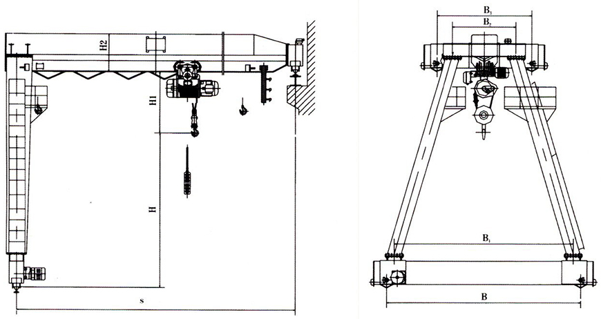 半門式起重機,又叫半龍門吊,是針對中小起重量(1-20t)、中小跨度(7.5-22m)設計制造的一款具有超高性價比的門式起重機,適用于具有一側承重梁的室內或室外。