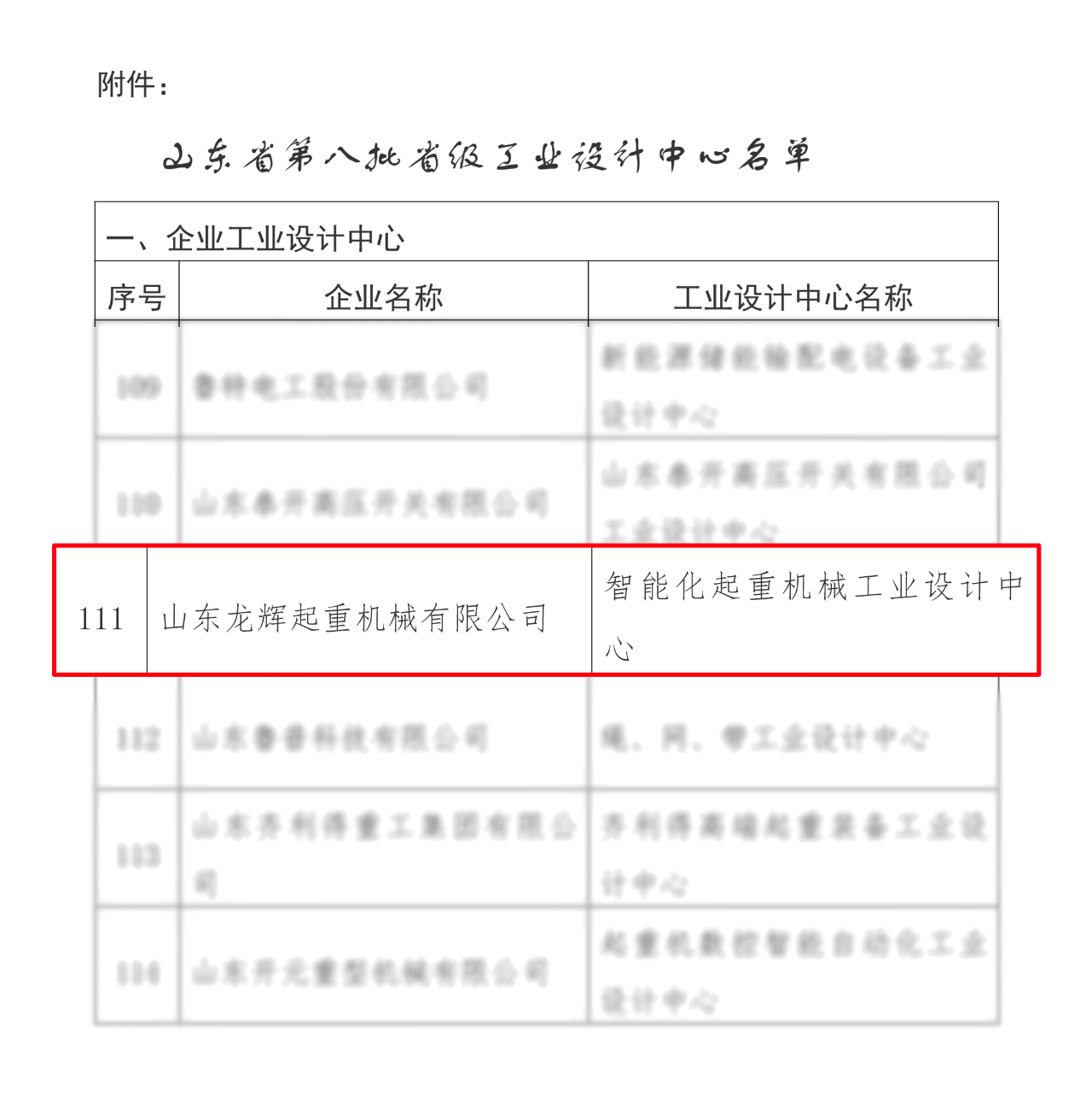 喜報!龍輝起重成功入選第八批省級工業(yè)設(shè)計中心認定名單